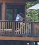 They showed clips of the 'travelogue' and talked about how Shania was recently up at her cottage with Fred in Muskoka. They showed a couple of photos of Shania and Fred on a deck, going into the cottage. Shania is wearing cut-off red sweat pants.