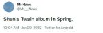 The ACM Awards replied to Shania. Does this mean she'll be performing on March 7? If she doesn't perform the lead single, I really don't see the point. Plus the awards show isn't even on TV. People have to pay to stream it on Amazon Prime Video. So if she does perform the lead single it won't be the best promotion. That means the single would probably be released March 2, 3 or 4.
