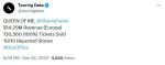 Groundbreaking for her crossover success in the â90s and â00s, Twain remains a sell-out star in 2023. The Queen of Me Tour earns its Boxscore bonafides via one leg in North America and more shows in Europe. She returned to the U.S. and Canada for more shows after the year-end clock stopped ticking, push the tourâs total gross to $110 million as of Nov. 14.