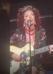 Yellow outfit with long, brown wig tonight for Vancouver's second concert.